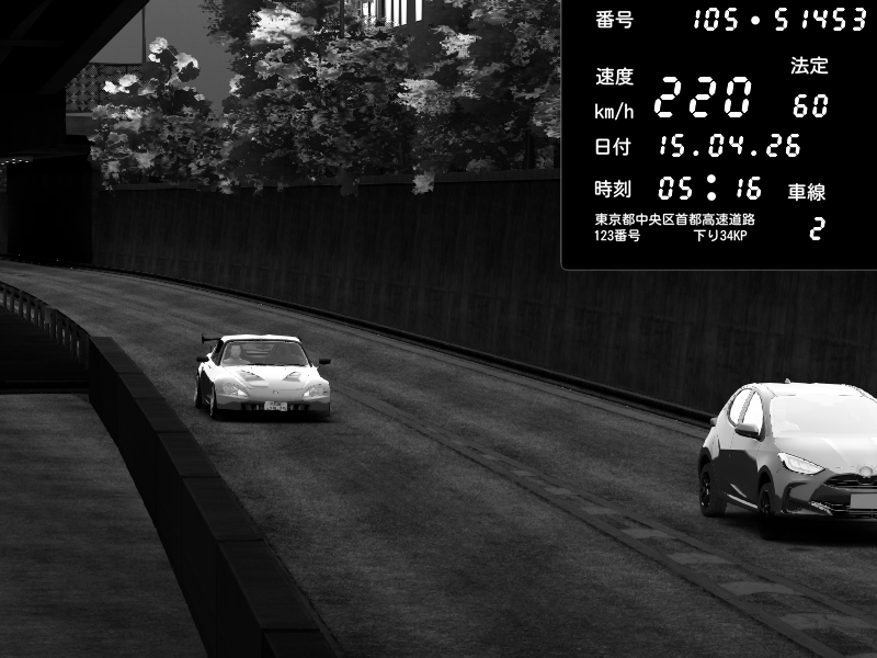 | 2026/04/15 05:16 | C1外回り 京橋 | 220 / 60 km/h | Altens (Newbie) | Honda S2000 (AP2 - Legendary) | CAPTURE |