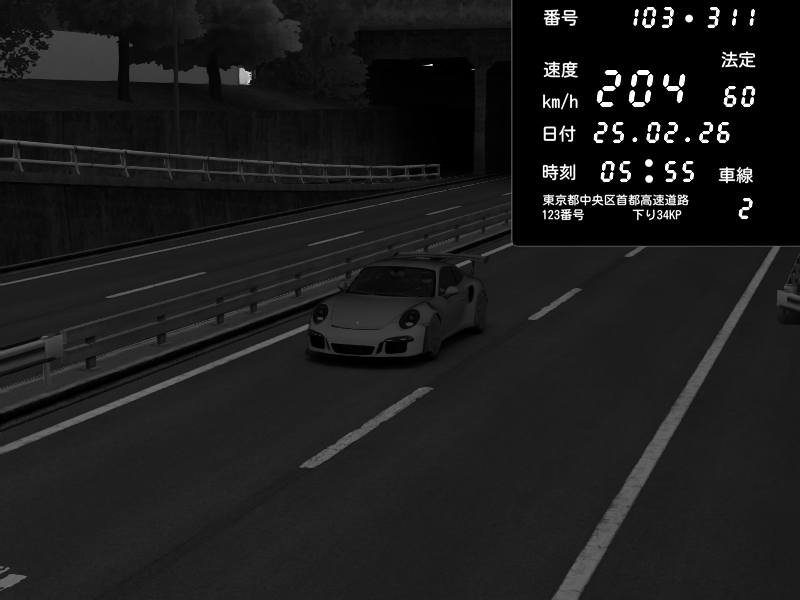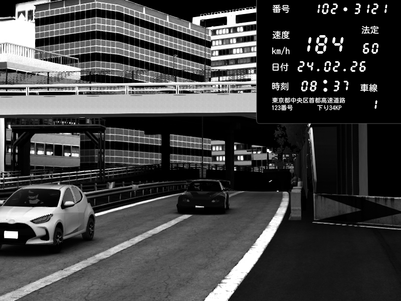 | 2026/02/24 22:27 | C1外回り 新富町 | 206 / 60 km/h | munyu0122 | Honda S2000 Turbo GT1 Amuse (AP1) | CAPTURE |