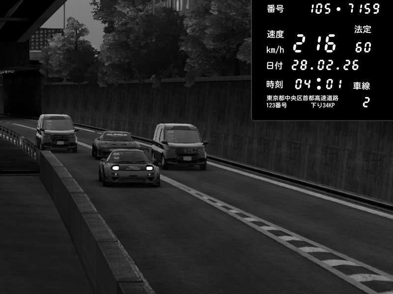 | 2026/02/27 20:21 | C1外回り 新富町 | 216 / 60 km/h | tonteki🐽 | Mazda RX-7 FD3S FEED Afflux GT3 | CAPTURE |