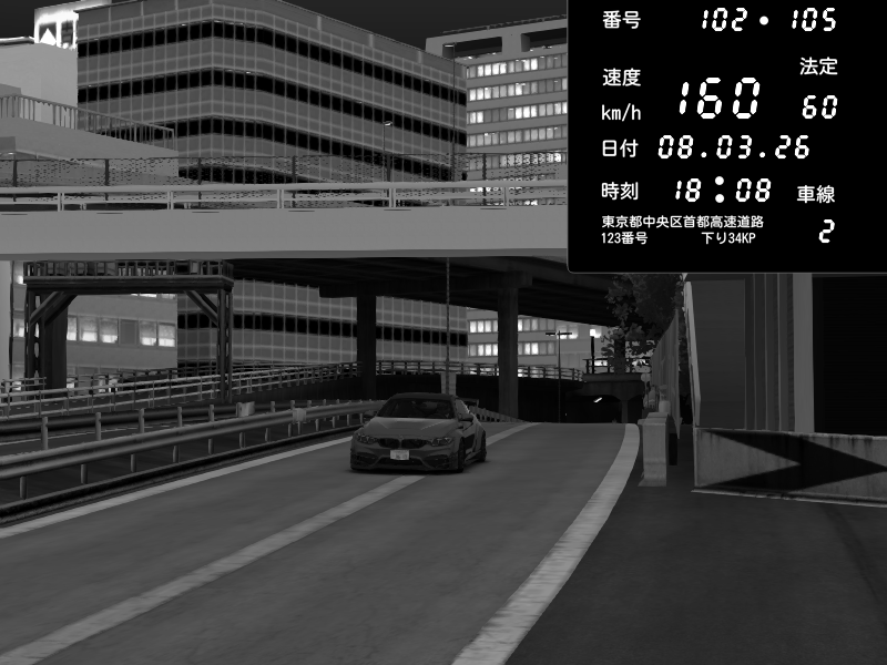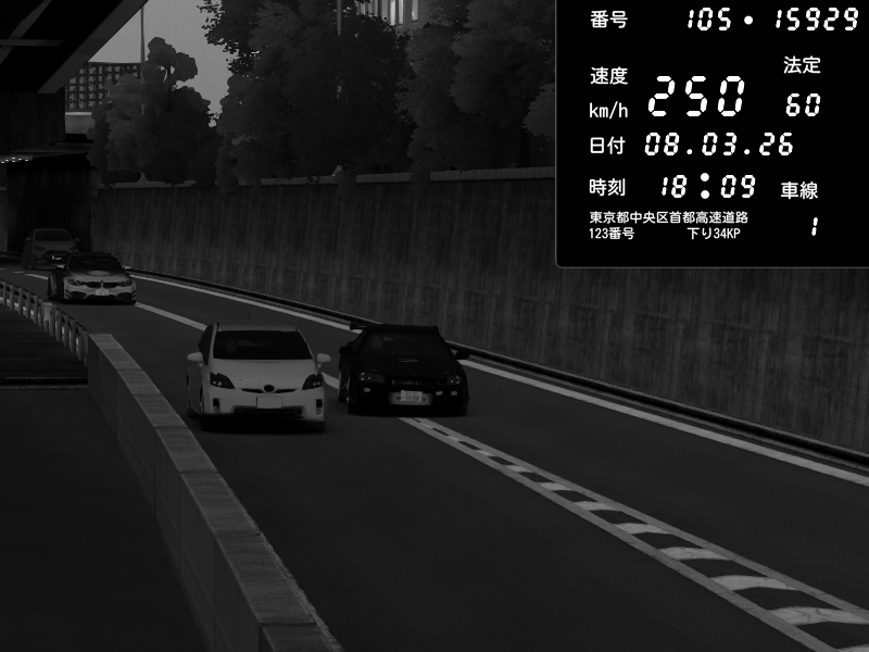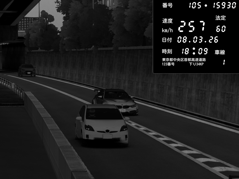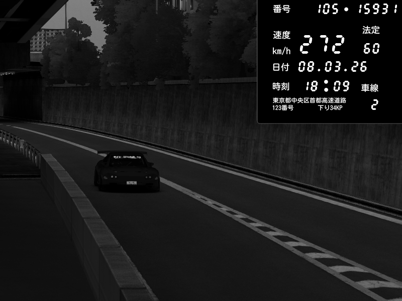 | 2026/03/08 18:09 | C1外回り 京橋 | 272 / 60 km/h | Raven | Pit Road M - Mitsubishi GTO Twin Turbo | CAPTURE |