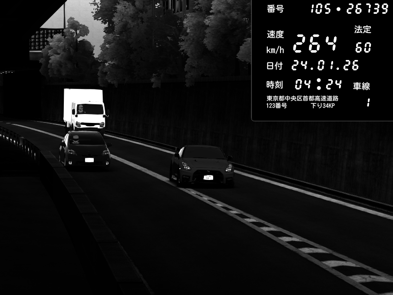 | 2026/01/23 22:44 | C1外回り 京橋 | 260 / 60 km/h | sumeshi_mgmg | Pit Road M - Mitsubishi GTO Twin Turbo | CAPTURE |