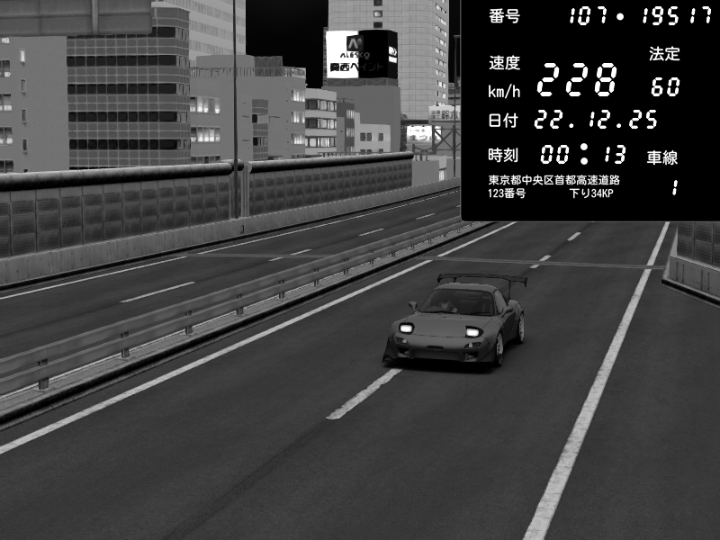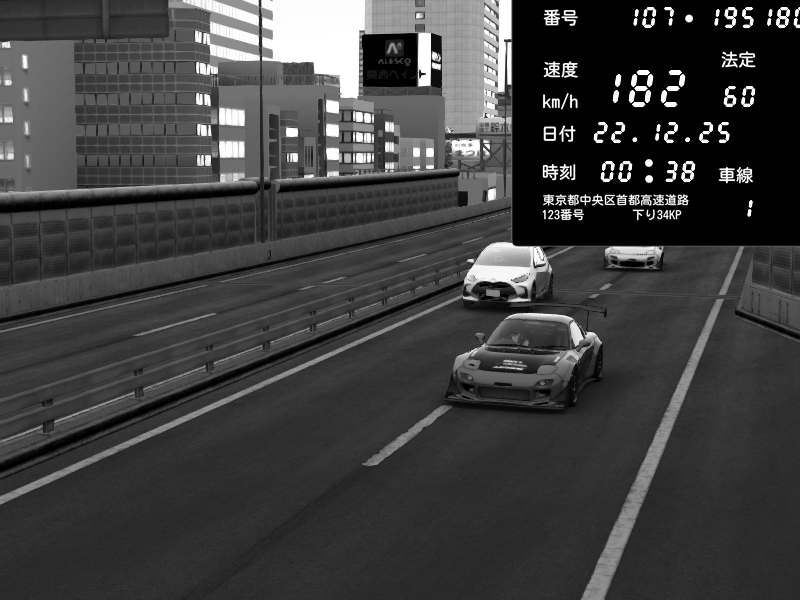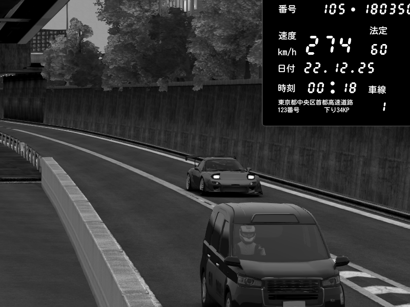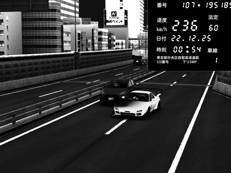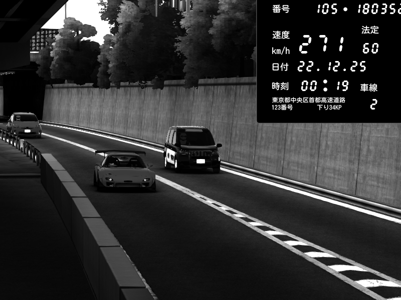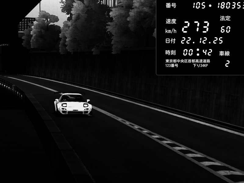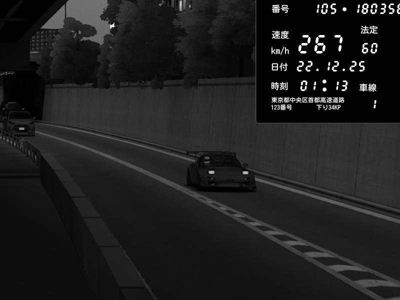 | 2025/12/22 01:13 | C1外回り 京橋 | 244 / 60 km/h | Mha_Hang | Mazda RX-7 FD3S FEED Afflux GT3 | CAPTURE |