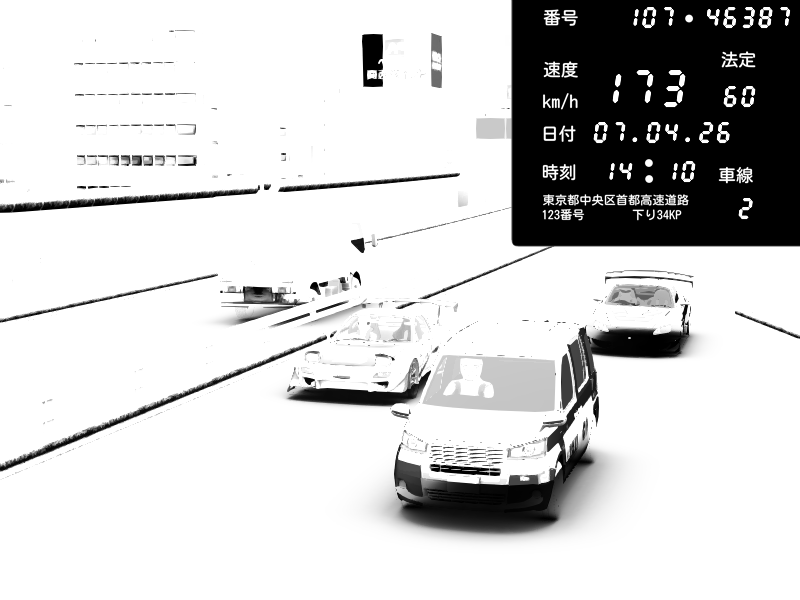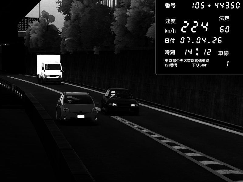 | 2026/04/07 14:15 | C1外回り 京橋 | 221 / 60 km/h | Ls04 | Mitsubishi Lancer Evolution V Wangan Spec | CAPTURE |