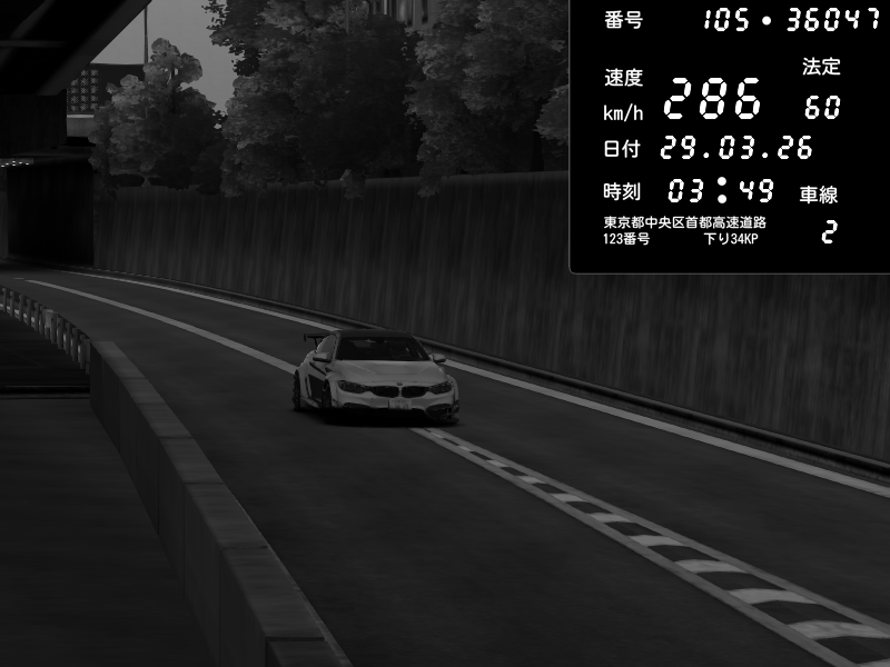 | 2026/03/29 03:49 | C1外回り 京橋 | 286 / 60 km/h | Hennessy | BMW M4 crash.Sp Varis Widebody | CAPTURE |