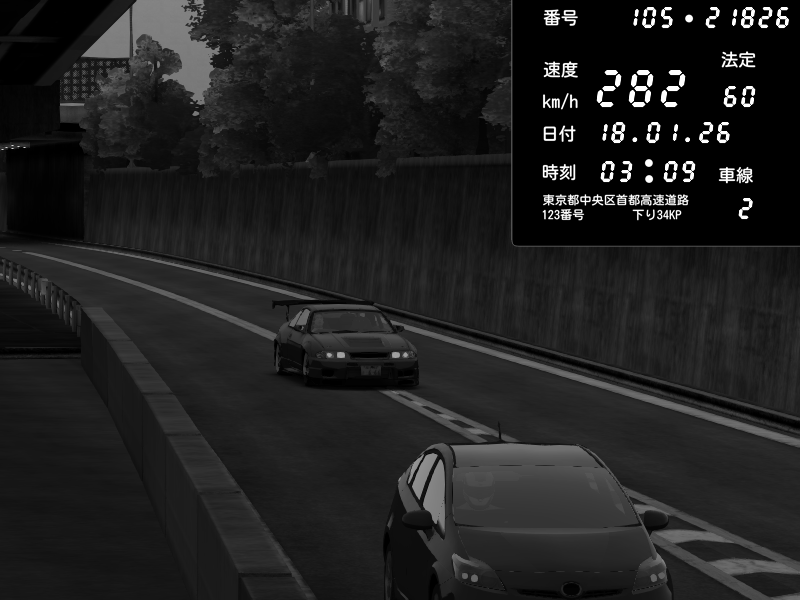 | 2026/01/18 03:09 | C1外回り 京橋 | 282 / 60 km/h | gc8 lover | Nissan Skyline GTR R33 (S3 - Wangan) | CAPTURE |