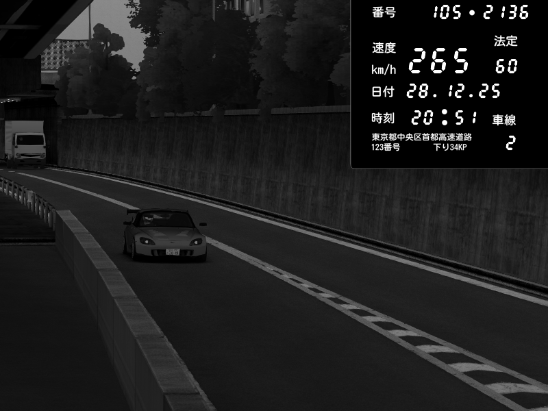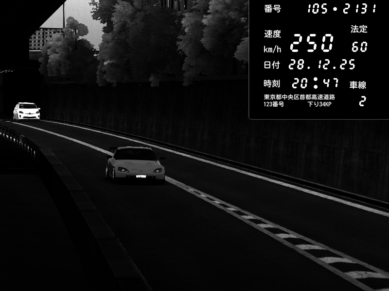 | 2025/12/28 20:47 | C1外回り 新富町 | 110 / 60 km/h | Enemy_Down_gg | Honda S2000 (AP2 - Legendary) | CAPTURE |