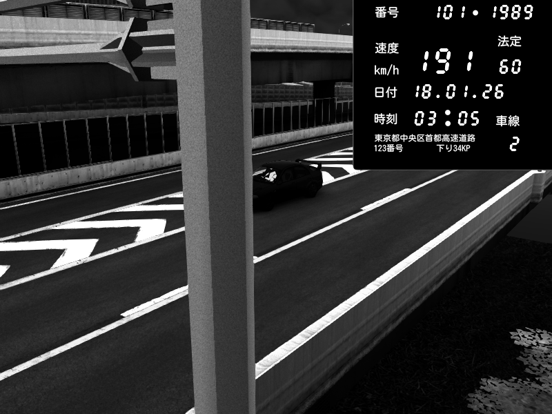 | 2026/01/18 03:05 | C1内回り 竹橋JCT | 191 / 60 km/h | SoftHard | Mitsubishi Lancer Evolution V Wangan Spec | CAPTURE |