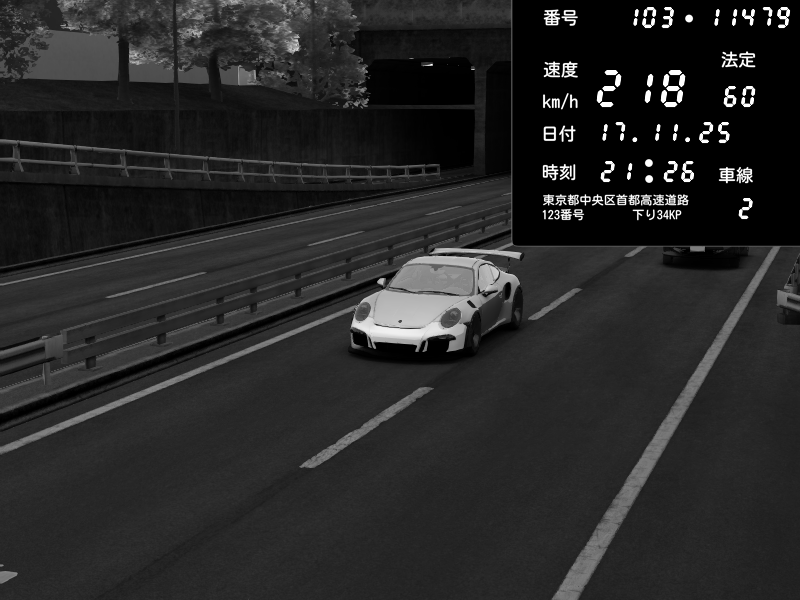 | 2025/11/17 21:26 | C1内回り 銀座 | 218 / 60 km/h | d3ck5rq | Porsche 911 GT3 RS | CAPTURE |