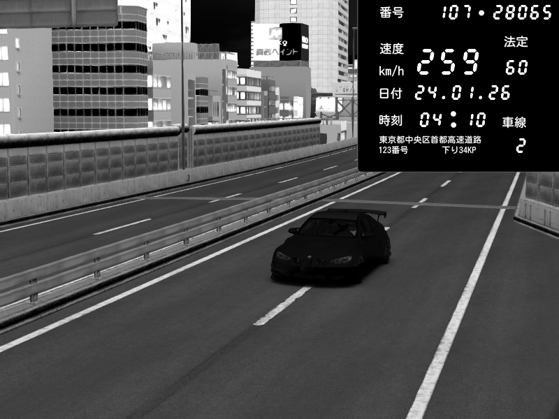 | 2026/01/23 22:48 | C1外回り 新富町 | 209 / 60 km/h | PaNko | Honda S2000 (AP2 - Legendary) | CAPTURE |