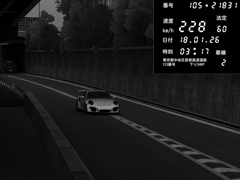 | 2026/01/18 03:17 | C1外回り 京橋 | 228 / 60 km/h | GilliNGollo | Porsche 911 GT3 RS | CAPTURE |