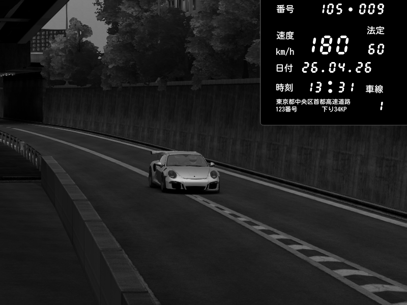 | 2026/04/26 13:31 | C1外回り 京橋 | 180 / 60 km/h | yu08 | Porsche 911 GT3 RS | CAPTURE |