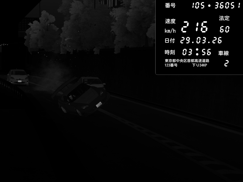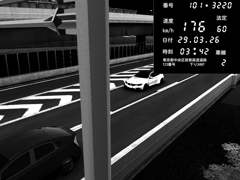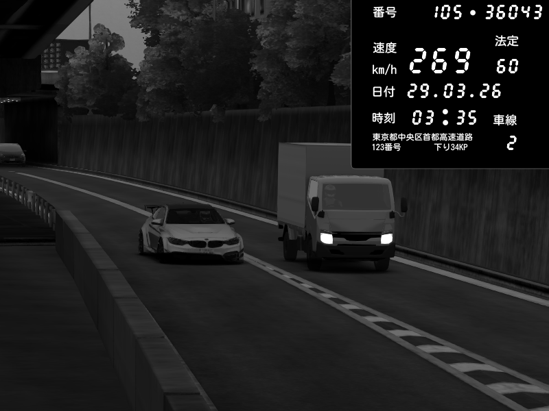 | 2026/03/29 03:39 | C1外回り 新富町 | 176 / 60 km/h | Hennessy | BMW M4 crash.Sp Varis Widebody | CAPTURE |