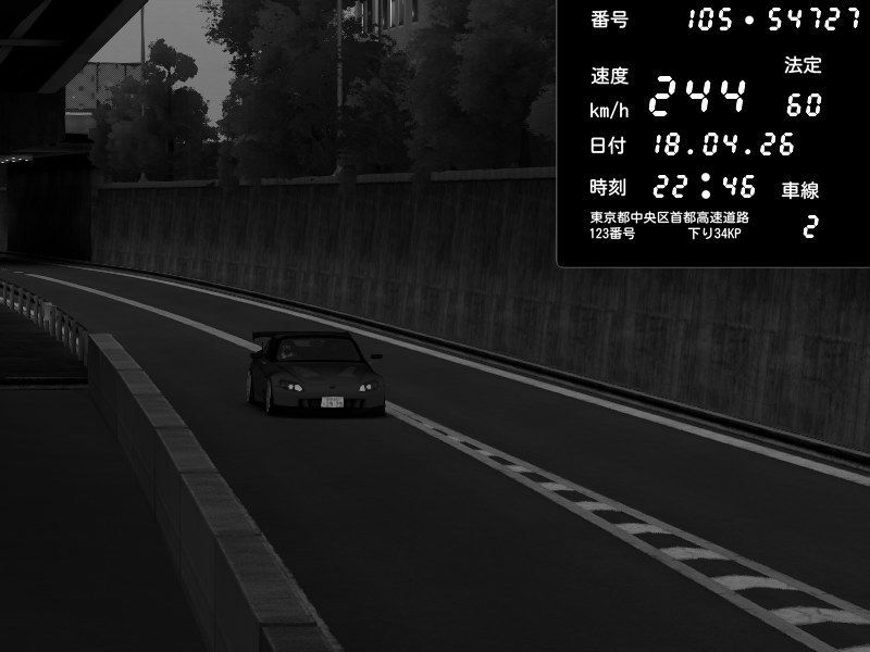 | 2026/04/18 22:46 | C1外回り 芝公園 | 241 / 60 km/h | YT1903 | Honda S2000 (AP2 - Legendary) | CAPTURE |