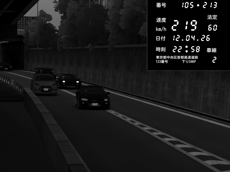 | 2026/04/12 22:56 | C1外回り 京橋 | 190 / 60 km/h | Paknas | Honda NSX [NA1] PVLSX | CAPTURE |
