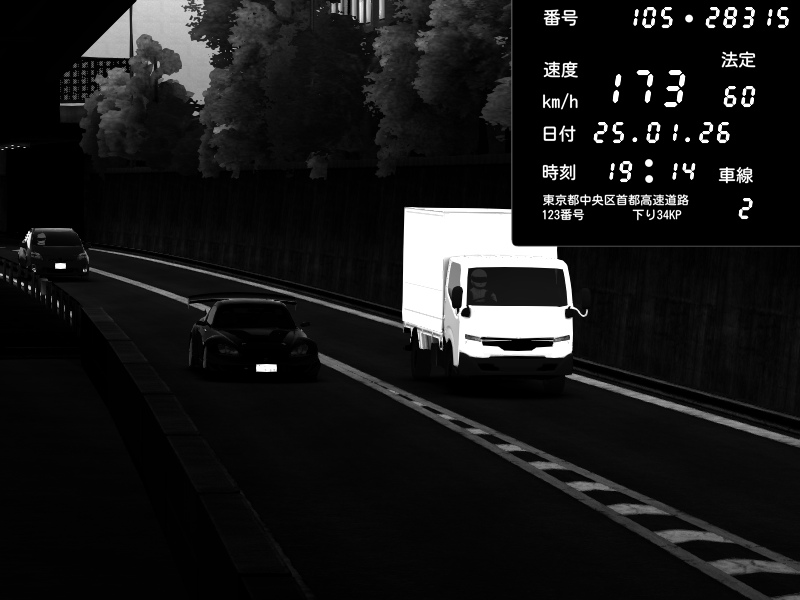 | 2026/01/25 19:07 | C1外回り 新富町 | 142 / 60 km/h | ナイトシフト | Honda S2000 (AP2 - Legendary) | CAPTURE |