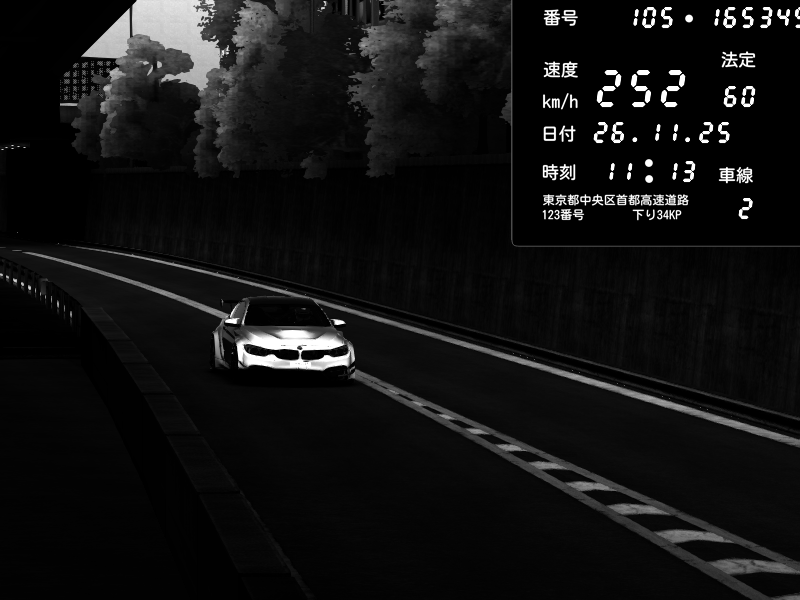 | 2025/11/26 11:13 | C1外回り 京橋 | 252 / 60 km/h | ku syabu | BMW M4 crash.Sp Varis Widebody | CAPTURE |