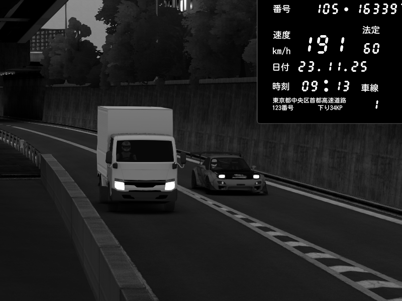 | 2025/11/23 09:48 | C1内回り 銀座 | 174 / 60 km/h | Shiero | BMW M4 crash.Sp Varis Widebody | CAPTURE |