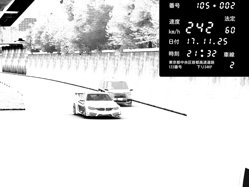 | 2025/11/17 21:32 | C1外回り 京橋 | 242 / 60 km/h | GereGere | BMW M4 crash.Sp Varis Widebody | CAPTURE |
