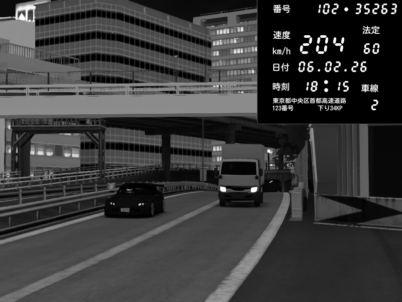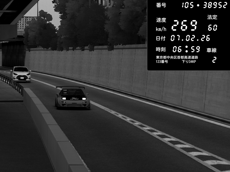 | 2026/02/07 05:48 | C1内回り 竹橋JCT | 199 / 60 km/h | StarRingChild | Honda NSX [NA1] PVLSX | CAPTURE |
