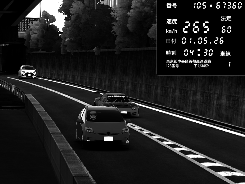 | 2026/04/29 21:30 | C1外回り 新富町 | 130 / 60 km/h | ninias | BMW M4 crash.Sp Varis Widebody | CAPTURE |