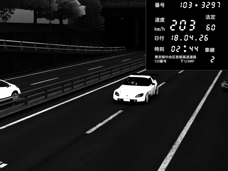 | 2026/04/18 02:33 | C1内回り 竹橋JCT | 203 / 60 km/h | 木曜が一番疲れている | Honda S2000 (AP2 - Legendary) | CAPTURE |