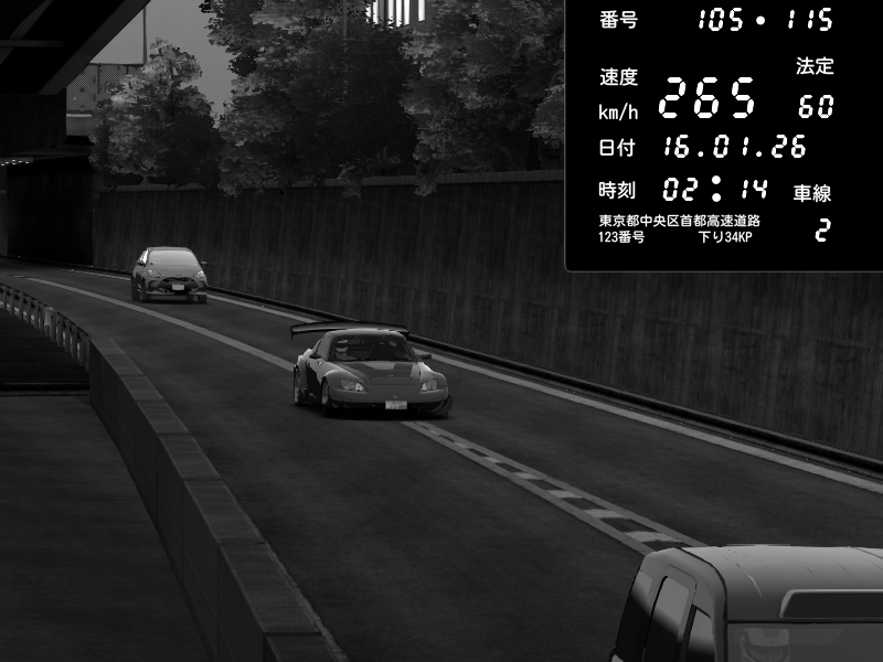 | 2026/01/15 13:31 | C1外回り 京橋 | 267 / 60 km/h | Escape77JP@pad | Honda S2000 (AP2 - Legendary) | CAPTURE |