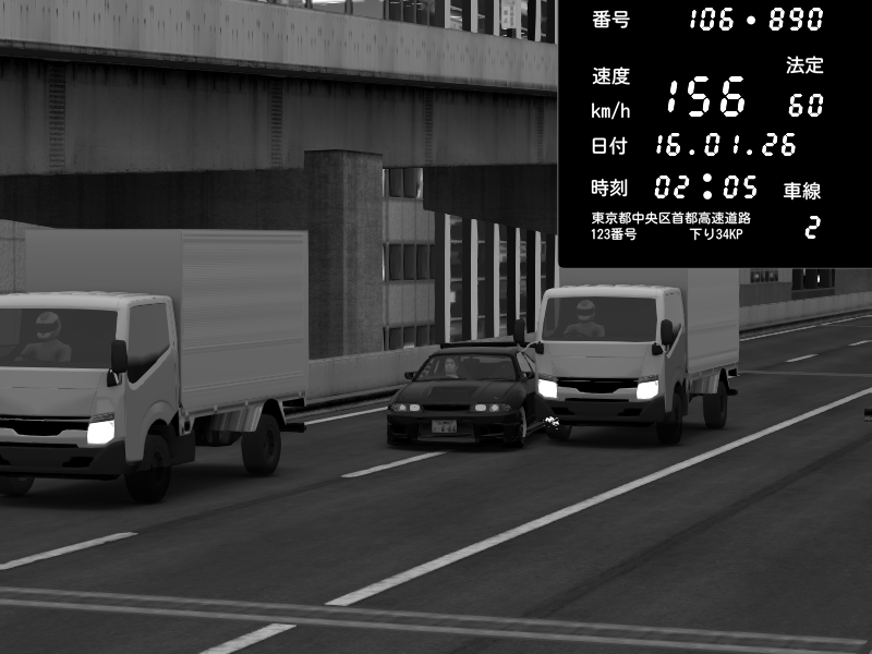 | 2026/01/15 12:15 | C1内回り 竹橋JCT | 179 / 60 km/h | Reedy | Nissan GT-R NISMO 2017 | CAPTURE |
