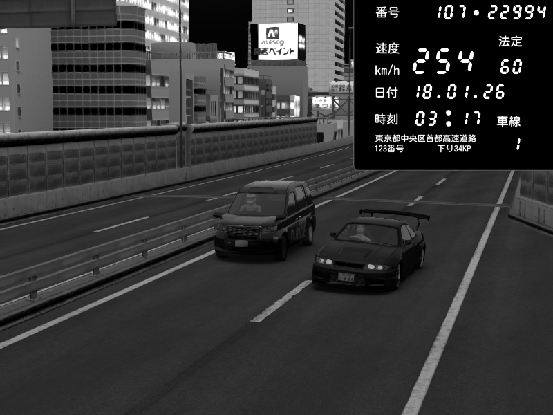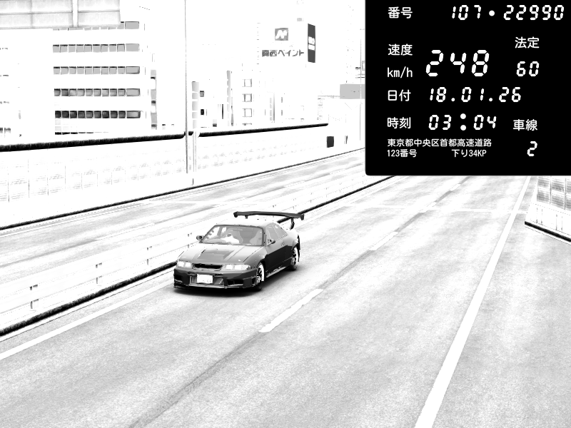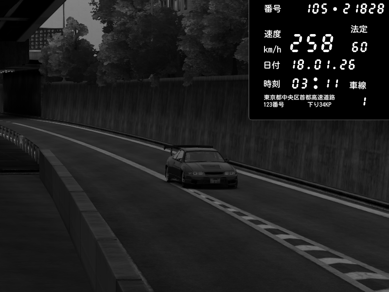 | 2026/01/18 03:16 | C1外回り 新富町 | 165 / 60 km/h | gc8 lover | Nissan Skyline GTR R33 (S3 - Wangan) | CAPTURE |
