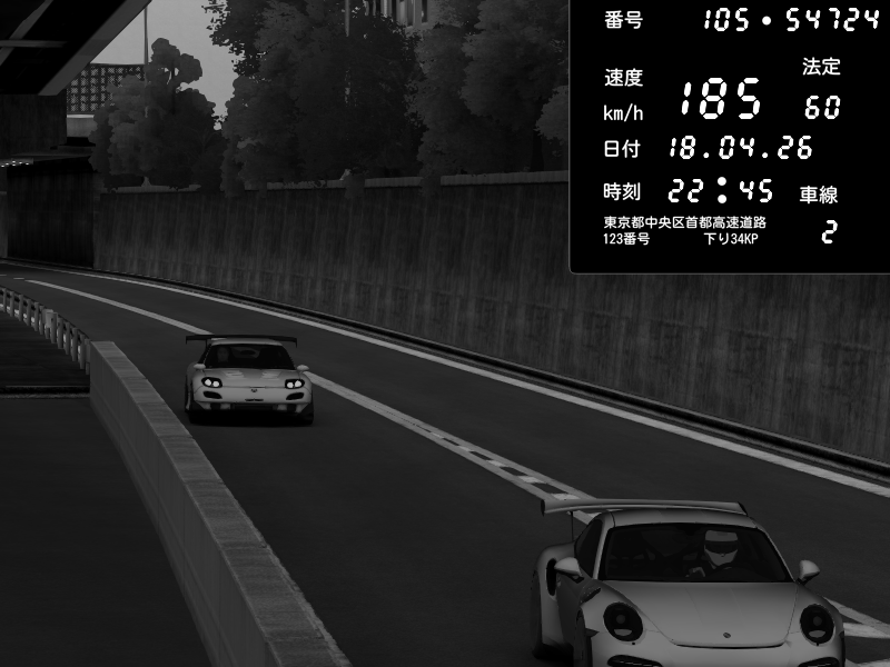 | 2026/04/18 22:45 | C1外回り 京橋 | 205 / 60 km/h | juice | Porsche 911 GT3 RS | CAPTURE |