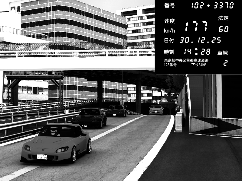 | 2025/12/30 14:27 | C1外回り 京橋 | 281 / 60 km/h | G29&32TV60Hz3画面の飲酒中老人 | Honda S2000 Turbo GT1 Amuse (AP1) | CAPTURE |