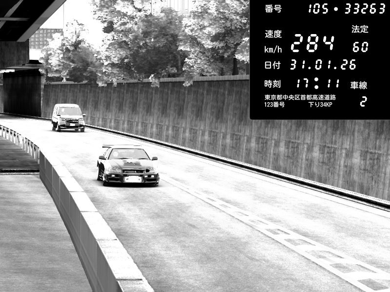 | 2026/02/01 00:56 | C1外回り 新富町 | 140 / 60 km/h | SHOW5 | Nissan Skyline GTR R33 (S3 - Wangan) | CAPTURE |