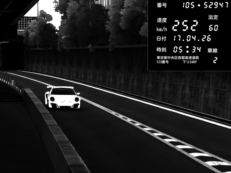 | 2026/04/17 05:34 | C1外回り 京橋 | 252 / 60 km/h | mlln | Porsche 911 GT3 RS | CAPTURE |