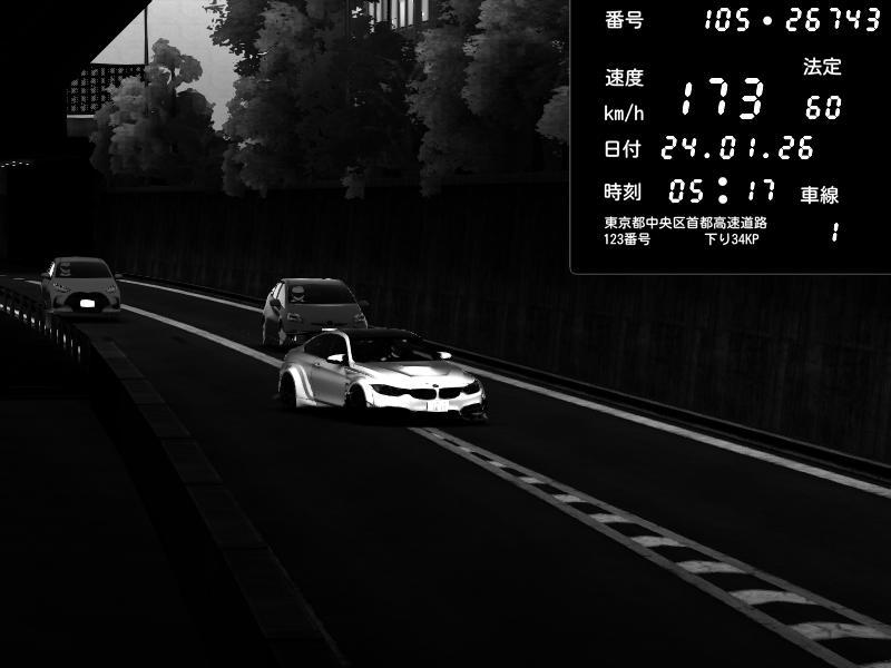| 2026/01/23 22:47 | C1外回り 京橋 | 264 / 60 km/h | sin👻 | BMW M4 crash.Sp Varis Widebody | CAPTURE |