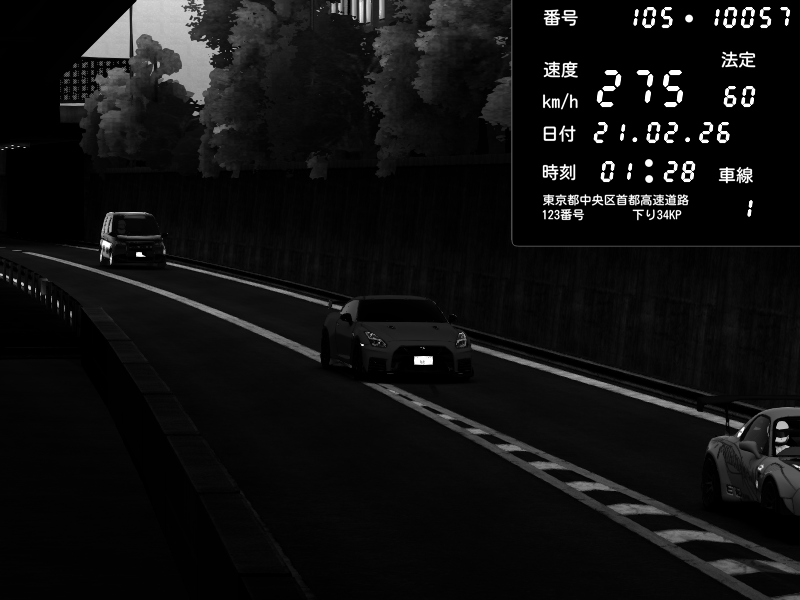 | 2026/02/21 01:30 | C1外回り 芝公園 | 238 / 60 km/h | RedGT-R Man | Nissan GT-R NISMO 2017 | CAPTURE |