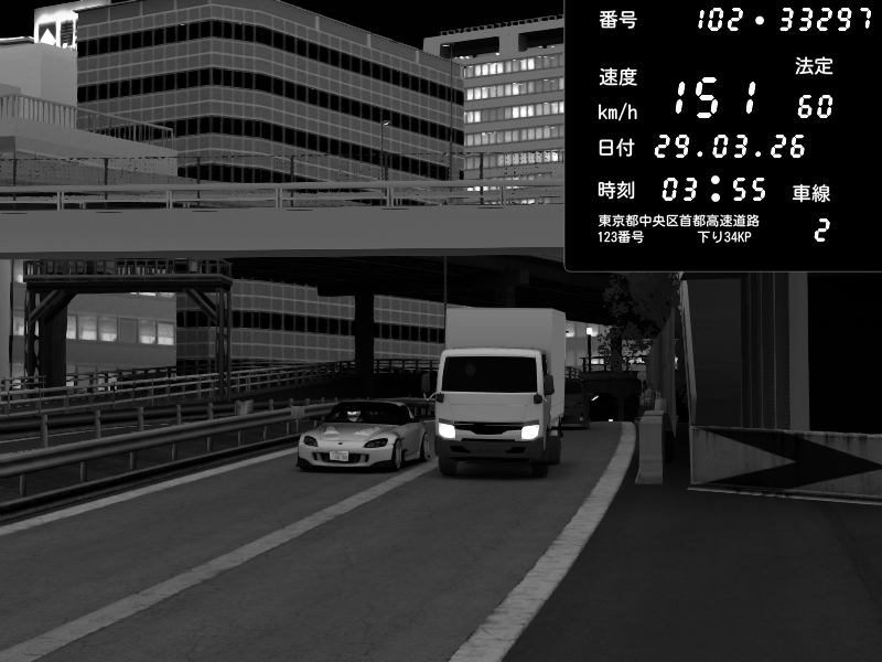 | 2026/03/29 04:10 | C1外回り 新富町 | 177 / 60 km/h | hayato | Honda S2000 (AP2 - Legendary) | CAPTURE |