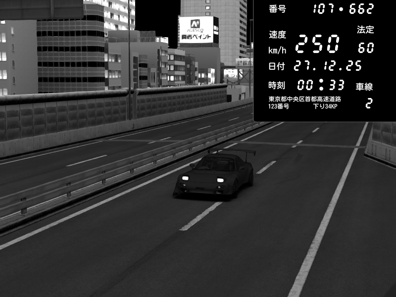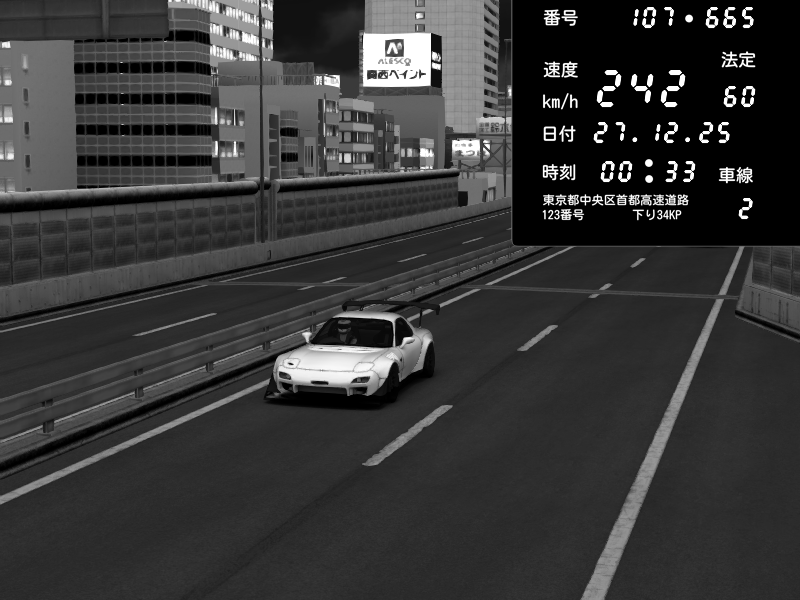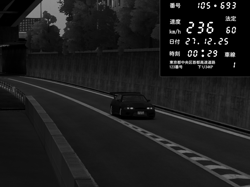 | 2025/12/27 00:29 | C1外回り 京橋 | 236 / 60 km/h | admiral77 | Nissan Skyline GTR R33 (S3 - Wangan) | CAPTURE |