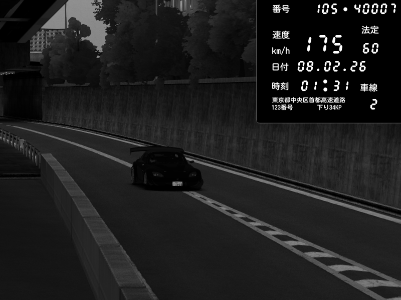 | 2026/02/08 01:31 | C1外回り 京橋 | 175 / 60 km/h | 洸樹@C1runner | Honda S2000 Turbo GT1 Amuse (AP1) | CAPTURE |