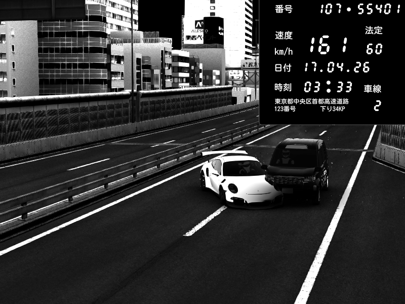 | 2026/04/17 03:46 | C1外回り 京橋 | 225 / 60 km/h | Player | BMW M4 crash.Sp Varis Widebody | CAPTURE |