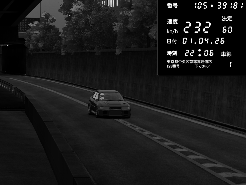 | 2026/04/01 22:06 | C1外回り 京橋 | 232 / 60 km/h | ??? | Mitsubishi Lancer Evolution V Wangan Spec | CAPTURE |