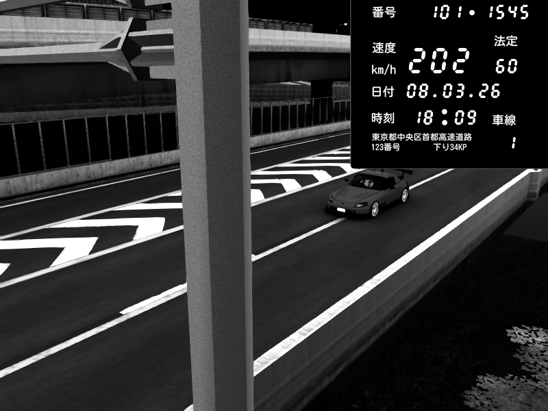 | 2026/03/08 18:09 | C1内回り 竹橋JCT | 202 / 60 km/h | 木曜が一番疲れている | Honda S2000 (AP2 - Legendary) | CAPTURE |