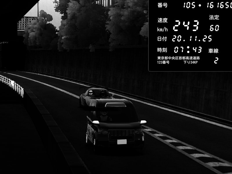 | 2025/11/20 06:45 | C1内回り 京橋 | 183 / 60 km/h | DeeK | Mazda RX-7 FD3S FEED Afflux GT3 | CAPTURE |