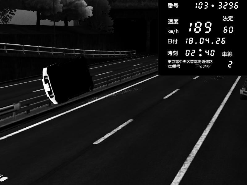 | 2026/04/18 02:40 | C1内回り 銀座 | 189 / 60 km/h | 木曜が一番疲れている | Honda S2000 (AP2 - Legendary) | CAPTURE |