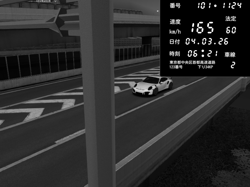 | 2026/03/04 20:44 | C1外回り 芝公園 | 199 / 60 km/h | Masakichi | Porsche 911 GT3 RS | CAPTURE |