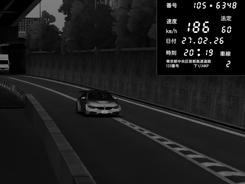| 2026/02/27 20:19 | C1外回り 京橋 | 186 / 60 km/h | Andojun | BMW M4 crash.Sp Varis Widebody | CAPTURE |