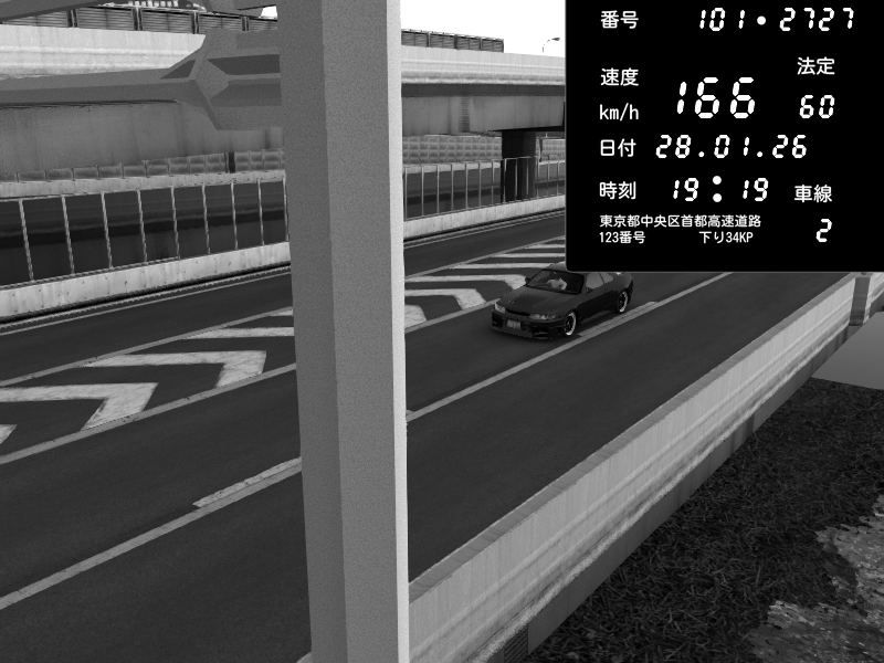 | 2026/01/28 19:19 | C1内回り 竹橋JCT | 166 / 60 km/h | 2612 | Nissan Skyline GTR R33 (S3 - Wangan) | CAPTURE |