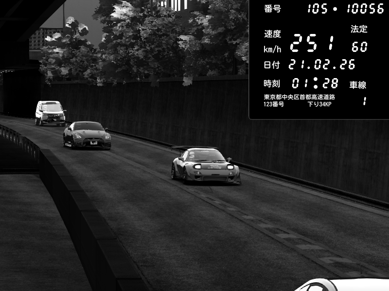 | 2026/02/21 01:48 | C1外回り 芝公園 | 236 / 60 km/h | SHOW5 | Pit Road M - Mitsubishi GTO Twin Turbo | CAPTURE |