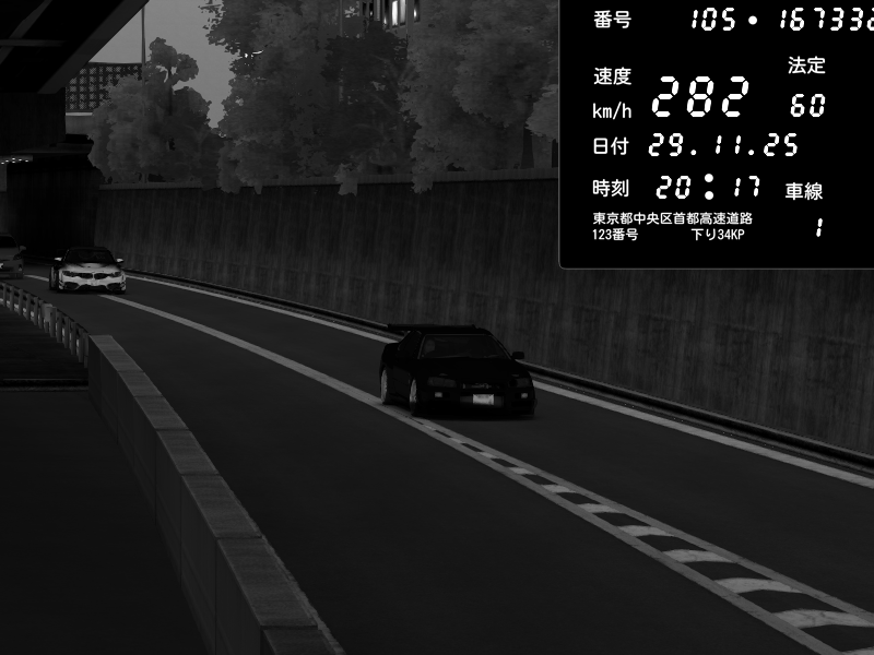| 2025/11/29 20:18 | C1外回り 京橋 | 241 / 60 km/h | sinon | Nissan Skyline GT-R R34 Nismo Omori Factory S1 | CAPTURE |