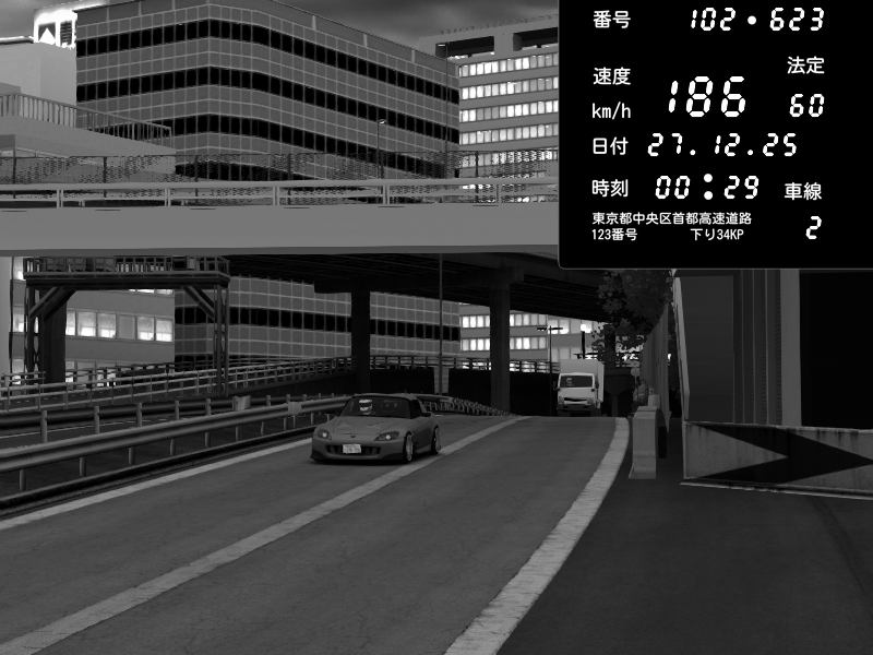 | 2025/12/27 00:29 | C1外回り 京橋 | 188 / 60 km/h | Mikken | Honda S2000 (AP2 - Legendary) | CAPTURE |