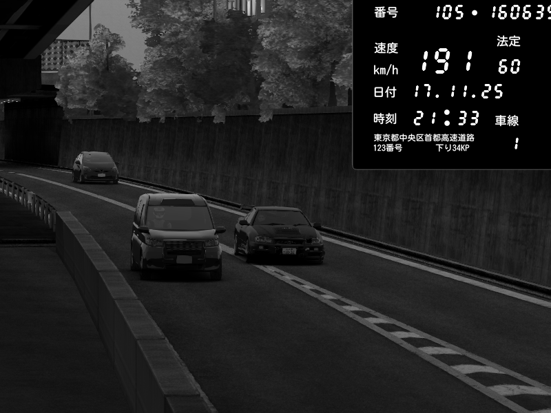 | 2025/11/17 21:33 | C1外回り 新富町 | 163 / 60 km/h | HIGHEST | Nissan Skyline GT-R R34 Nismo Omori Factory S1 | CAPTURE |