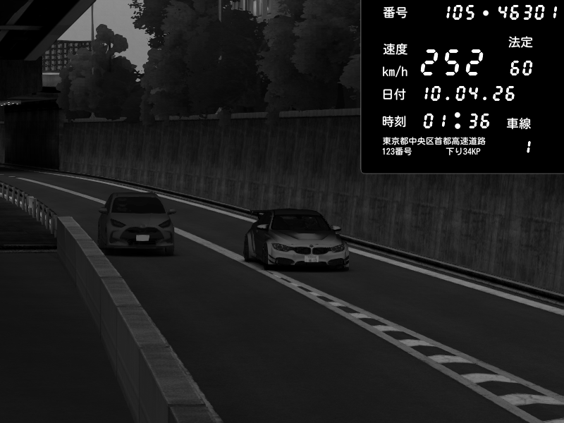 | 2026/04/10 05:42 | C1外回り 新富町 | 175 / 60 km/h | nightora2231 | BMW M4 crash.Sp Varis Widebody | CAPTURE |